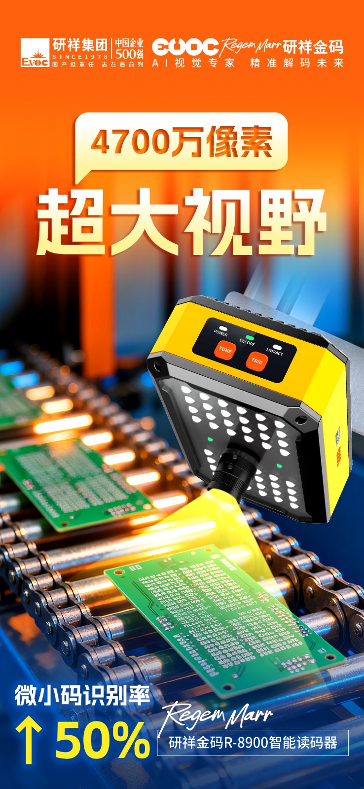 作为行业首款4700万像素的智能读码器,leyu.乐鱼R-8900单次识读即可覆盖500+条码,视野范围高达常规读码器的25倍。